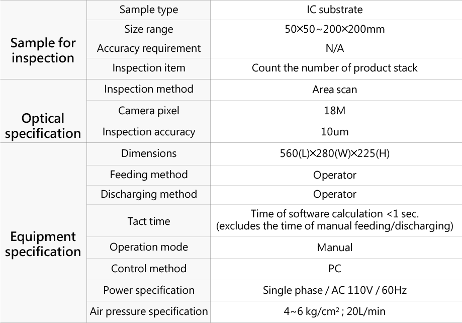 Put the substrate in the inspection area manually The total height of IC substrate is under 5cm. Download