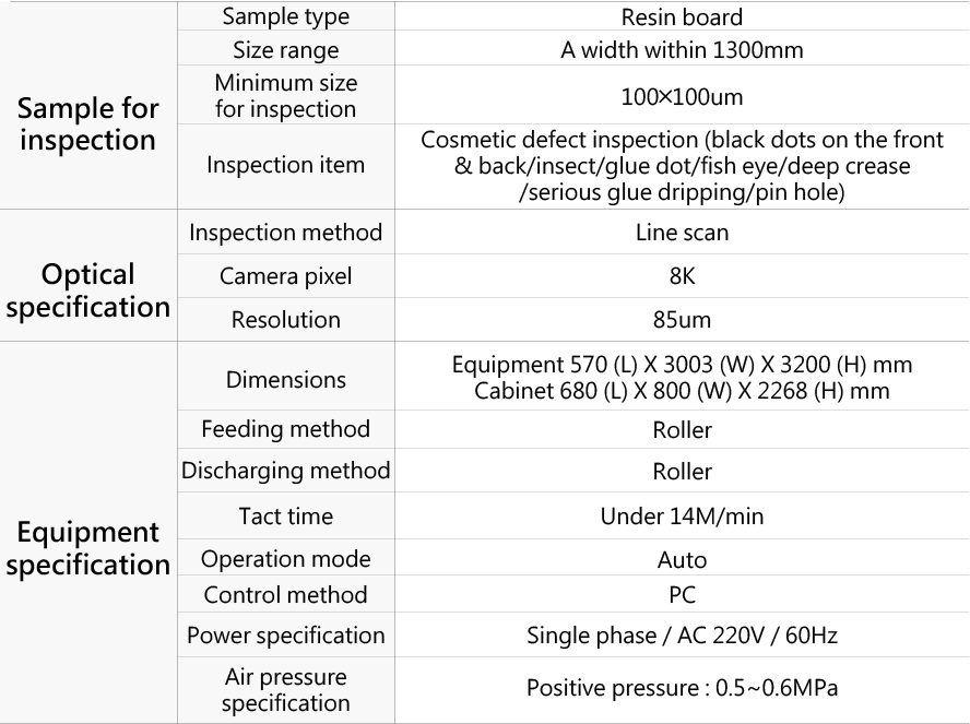 The optical module consists of high resolution lens and camera to accurately detect defects on the front/back of resin substrate through reflection and transmission. Download
