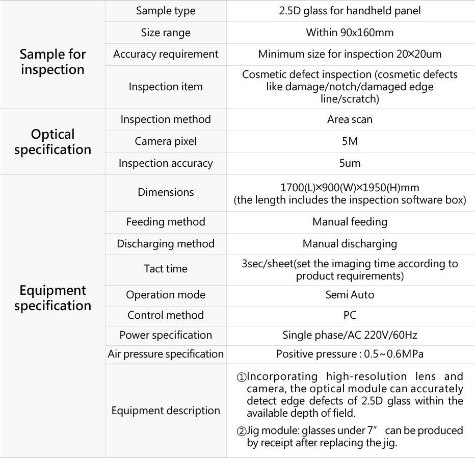 2.5D glass visual inspection machine